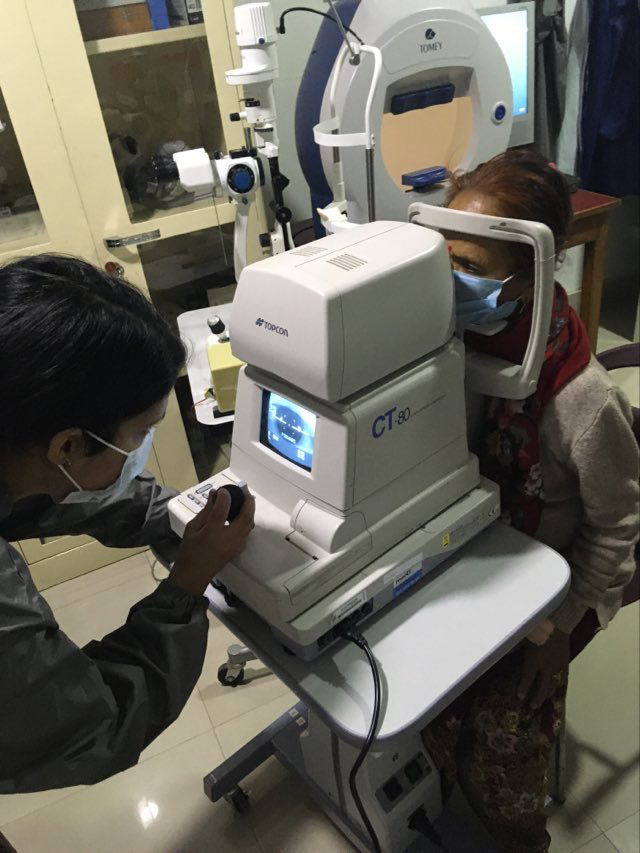 Merci à la Vista Klinik de Binningen ( Bâle) pour la donation de: 1 x tonomètre (mesure de la pression oculaire) 1 x périmètre. (mesure du champ visuel ) 1 x lampe à fente (contrôle de la cornée et fonds de l'oeil) (et notre association a acheté une table motorisée à 200 $ pour le tonomètre - merci à nos donateurs ) Le matériel est bien arrivé avec les 40 lits d hôpitaux par container depuis la Suisse via Calcutta par bateau et Kathmandu par camion Les patients pourront ainsi se faire diagnostiquer pour le glaucome et éviter d'aller à Kathmandu dans un centre. Une donation non négligeable de près de 35'000 CHF ! le personnel du département d'ophtalmologie en est très reconnaissant .